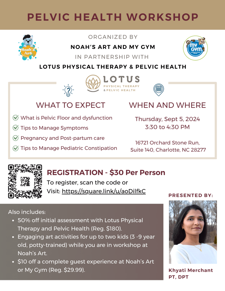 If you would like to bring your 3 to 9 year-old potty-trained kid for some fun & engaging art activities while you are in workshop, please contact Noah’s Art – call (704)981-2111 or text (704)703-2795.